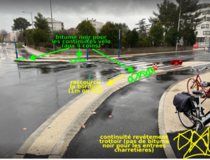 - les revêtements soient repris pour rendre lisible la continuité cyclable